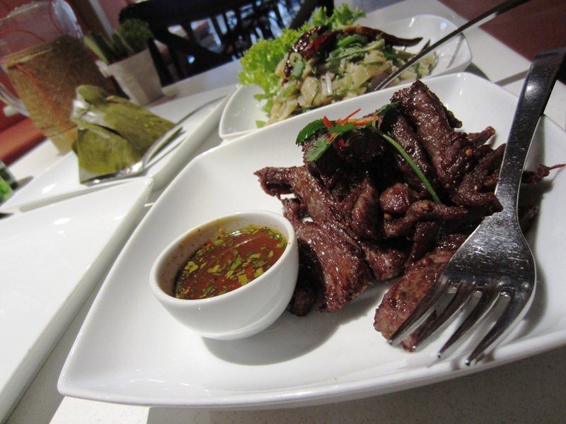 Nua Daed Deaw ($8) – Sun dried beef strips with Jim Jaew dipping sauce