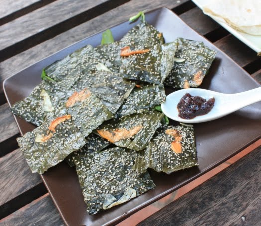 Not so much a restaurant review as per my usual ‘Eats’ but a dish in profile – a delicious Lao snack called khai pene. Ubiquitous on Luang Prabang’s menus, khai pene is basically dried river weed (think the Mekong River’s answer to seaweed), topped with sesame seeds, dried tomato and garlic then fried. It’s light, crispy, savoury and highly moreish, equally tasty eaten alone or with some kind of dipping sauce, like Lao chilli paste. Along with gracing most of the town’s menus, it’s also for sale by the packet at the local food market, so you can spread the khai pene love beyond Luang Prabang’s muddy shores!