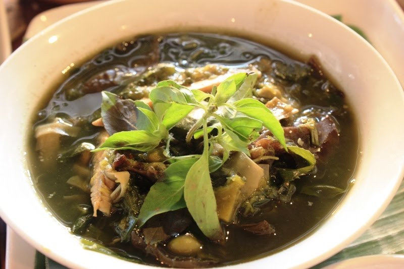 Bamboo shoot soup (gaeng nor mai) – young bamboo shoots and a mountain of local vegetables in a rich, hearty, earthy, green soup (vitamin overload!)