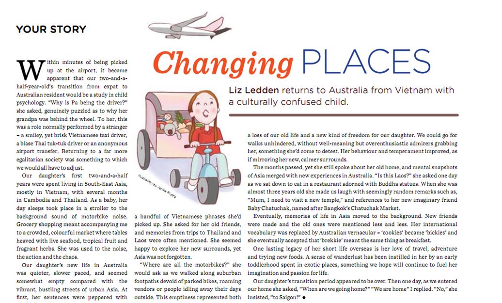 My article ‘Changing Places’ – first published in Sydney’s Child Magazine (and syndicated in Adelaide, Brisbane, Melbourne, Canberra and Perth’s versions), April 2013: