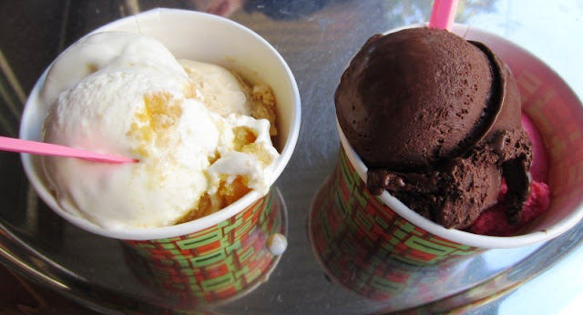 Double happiness – rosewater, mandarin & honey; salted caramel and white choc chip