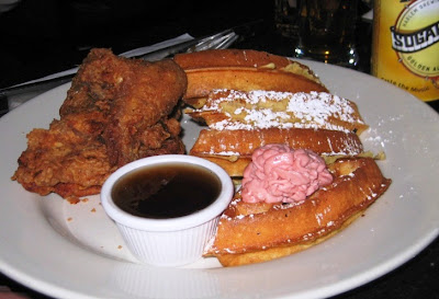 One thing we were curious to try was the supposed nirvana of all soul food dishes – chicken and waffles. That’s fried chicken and huge spongy waffles served TOGETHER with maple syrup poured all over the two(!) In search of this artery clogging grease fest we headed ‘across 110th street’ (love that song!) to Harlem, the heart of Manhattan’s African-American community and home to several well-known soul food restaurants. Top of my list was Amy Ruth’s, but after meeting up with some Upper West Side dwelling friends who are in the Harlem know, we were persuaded to try Melba’s instead – a classy little restaurant representing the new, more upmarket style pervading Harlem.